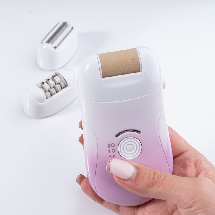 دارای سری اپیلاتور، سری شیور اصلاح ، سری سوهان پا، پد مخصوص اصلاح و کابل شارژر