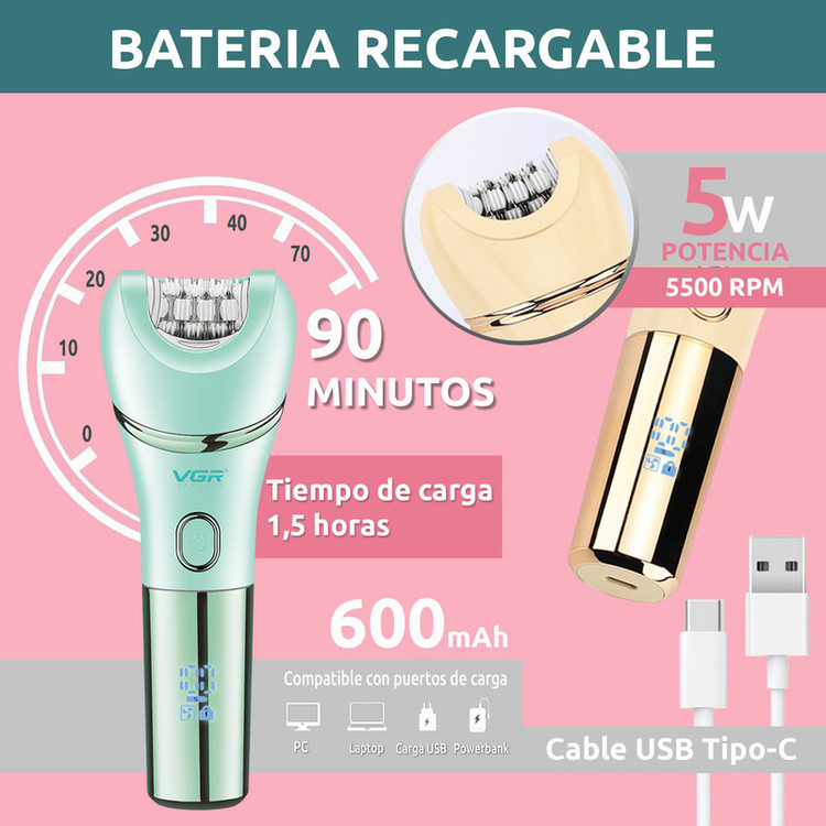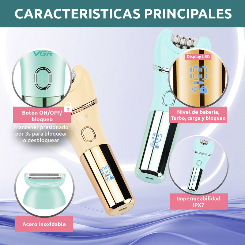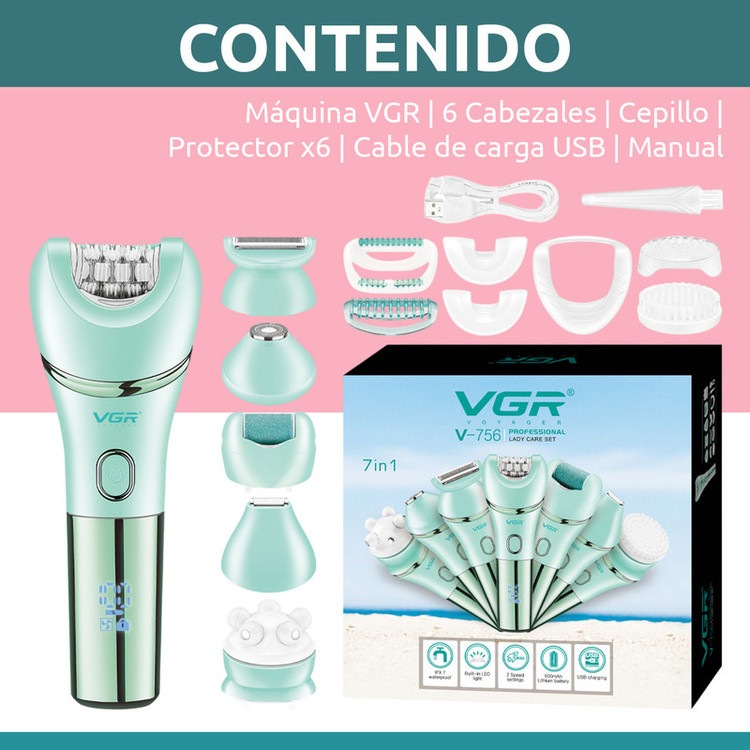 دستگاه اصلی اپیلاتور VGR V-756 7 سری مختلف برای اصلاح و اپیلاسیون,ماساژ صورت,شست و شو صورت,سنگ پا کابل شارژ USB