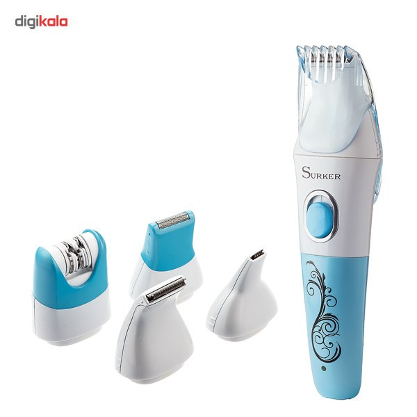 ست اصلاح «سورکر» (Surker) مدل «HC-510» چهار سری اصلاح و دو شانه دارد و با برق و باتری قابلشارژ کار میکند. سریهای دستگاه شامل اپیلاتور، تریمر، شیور فویلی و تریمر باریک میشوند. اپیلاتور دستگاه دارای موچینهایی از جنس استیل ضدزنگ است که روی غلتک چرخشی قرار دارند. اپیلاتور عرض کم و تعداد موچینهای محدودی دارد و برای اصلاح نقاط محدود مناسب است. روی تریمر اصلی، یک عدد شانهی قابلتنظیم نصب میشود که به کمک آن میتوان موها را در اندازههای 2، 4، 6، 8 و 10 میلیمتر کوتاه کرد. علاوه بر این شانه، یک شانهی باریک قابلتنظیم دیگر نیز ارائه شده است که طول اصلاح 1، 2 و 3 میلیمتر دارد. این دو شانه از پلاستیک شفاف ساخته شدهاند. بعد از کوتاهکردن موها میتوان با استفاده از سری شیور، موها را از نزدیکترین نقطه به پوست قطع کرد و پوستی صاف داشت. درانتها یک تریمر باریک نیز ارائه شده است که برای اصلاح دقیقتر استفاده میشود. HC-510 به باتری قابلشارژی مجهز است که در مدتزمان 8 تا 12 ساعت شارژ کامل میشود و پس از آن به مدت حداقل 30 دقیقه میتوان از دستگاه استفاده کرد. ماشین اصلاح در حالت اتصال به برق هم کار میکند. این ماشین اصلاح با داشتن گوامینامهی IPX4 در برابر آب مقاوم است و قابلیت استفاده به صورت خشک و مرطوب دارد. همراه دستگاه برس تمیزکننده و روغن نیز ارائه شده است. برای افزایش طولعمر تیغهها، باید آنها را بعد از هر بار استفاده روغنکاری کرد. بهطورخلاصه Surker HC-510 چهار سری مختلف، دو شانهی قابلنصب روی تریمر اصلی، 8 طول اصلاح قابلتنظیم از 1 تا 10 میلیمتر و باتری قابلشارژ دارد؛ همچنین به صورت خشک و مرطوب قابلاستفاده است.