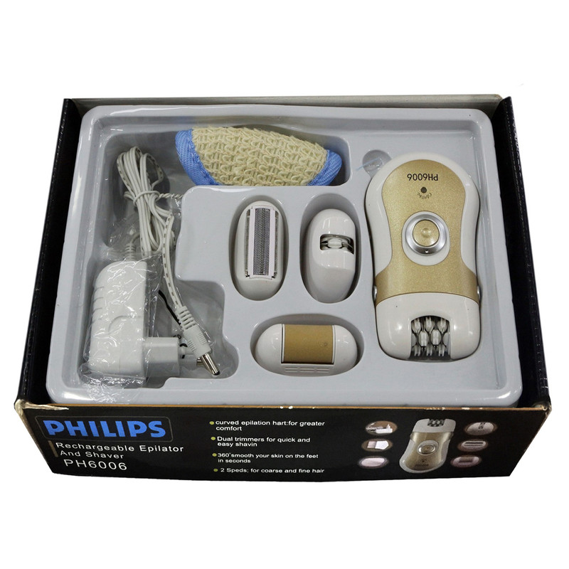 اقلام همراه: یک عدد دستگاه اپیلاتور فیلیپس مدل 6006 به همراه چهار مدل سری اصلاح - فرچه - پد - آداپتور