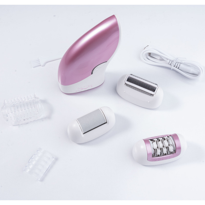 دارای سری اپیلاتور، سری شیور اصلاح به صورت فویلی و تریمر ، سری سوهان پا ، کابل شارژر ، برس تمیز کننده و در پوش محافظ