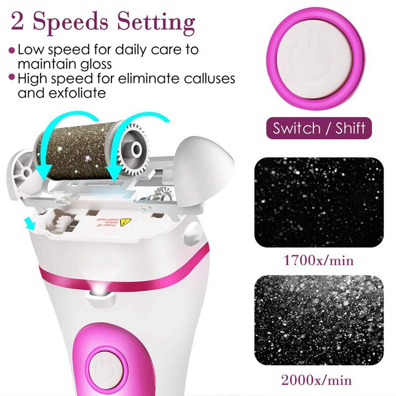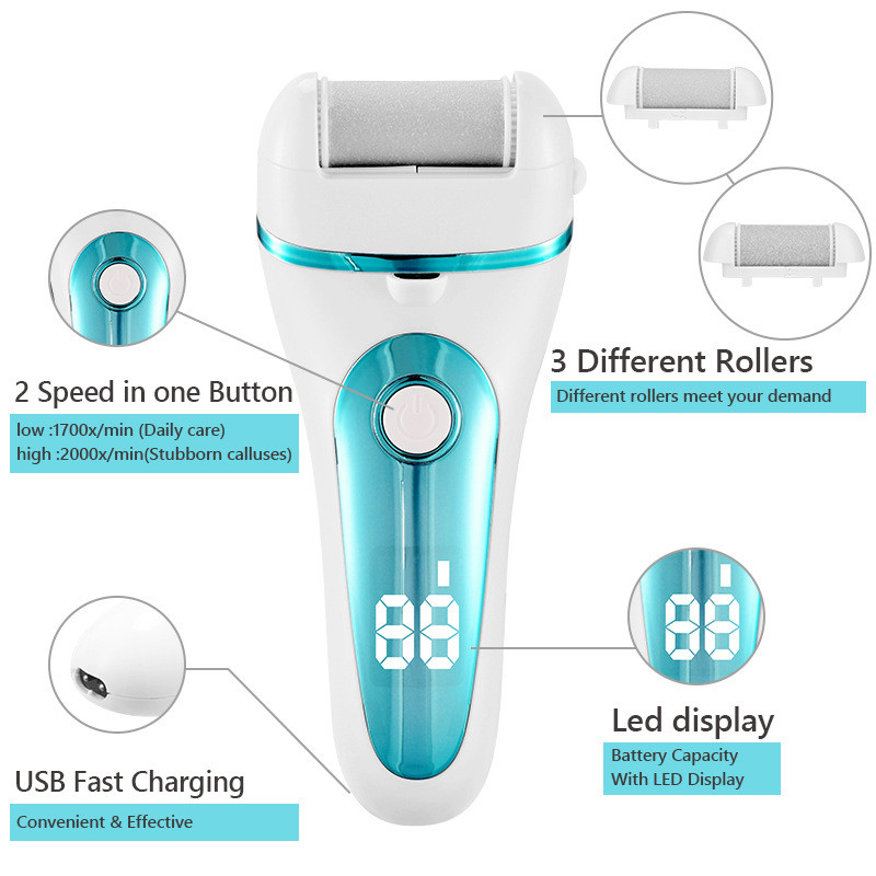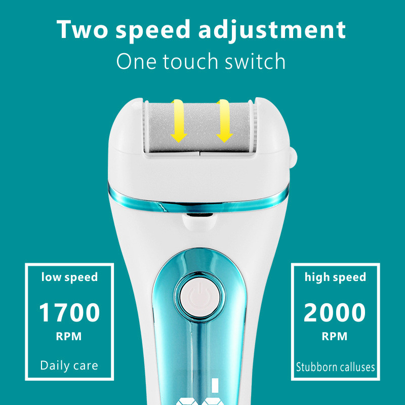 همچنین این دستگاه دارای 2 سرعت قابل تنظیم می باشد، که می توان آن را بر اساس نیازهای شما تنظیم کرد. اگر فشار بیش از حد قوی باشد، دستگاه به طور خودکار خاموش می شود. همچنین این دستگاه دارای گواهینامه ضد آب IPX7، می باشد که این امکان را می دهد که در زیر آب هم قابل استفاده باشد. همچنین سری های این دستگاه قابل تعویض و قابل شستشو می باشند پس دیگر نیازی به تهیه سری اضافی نیست. مناسب برای استفاده از پاهای مرطوب و خشک می باشد. این دستگاه دارای طراحی آرگونومیک نیز می باشد.
