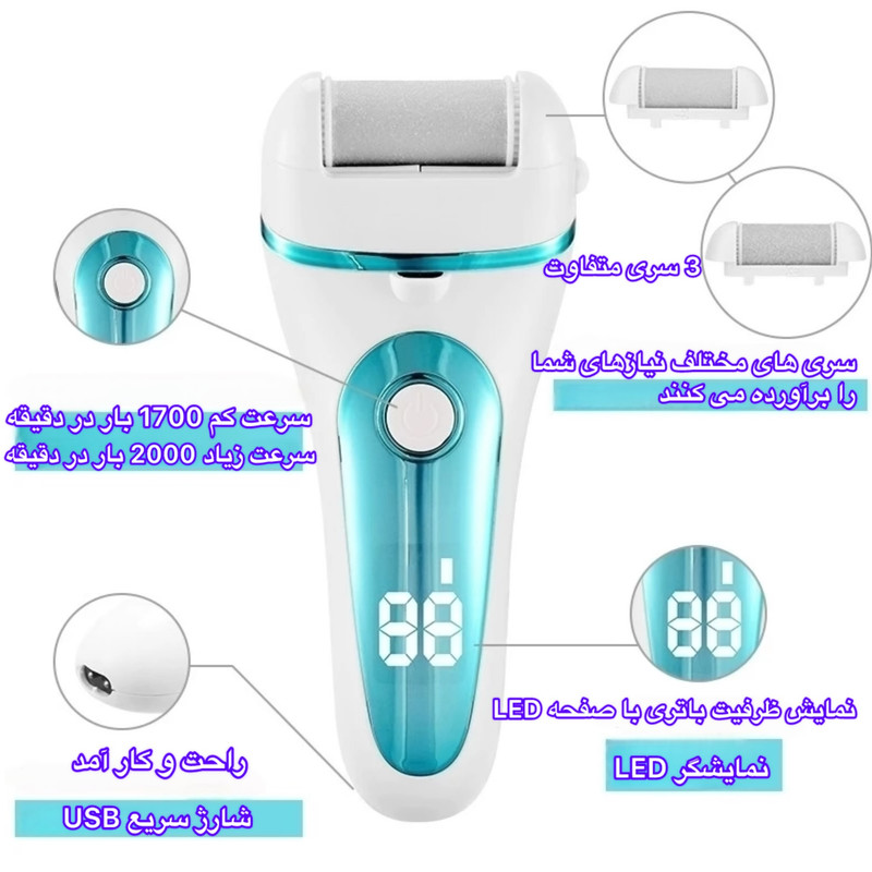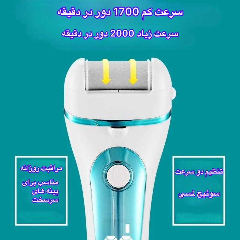 سوهان برقی پا مدل ZCAO-14 یک دستگاه کارآمد برای از بین بردن پینه، پوست مرده و خشکی کف پا است که با طراحی سبک و ارگونومیک، استفاده از آن را بسیار ساده و راحت کرده است. این دستگاه دارای سه سری سوهان مختلف است که بسته به نوع پوست و میزان پینه میتوان از سری نرم، معمولی یا زبر استفاده کرد. موتور دستگاه از دو سرعت 1700 و 2000 دور در دقیقه پشتیبانی میکند؛ سرعت کم برای مراقبت روزانه و سرعت بالا برای پینههای سخت مناسب است. وجود نمایشگر LED به شما کمک میکند درصد باتری و وضعیت دستگاه را بهطور دقیق مشاهده کنید. باتری قدرتمند لیتیومی 1200 میلیآمپرساعت با شارژ سریع USB قابل شارژ بوده و در حدود ۱.۵ ساعت شارژ میشود. بدنه دستگاه ضدآب با استاندارد IPX7 است و امکان شستوشوی کامل و استفاده در حالت خشک و مرطوب را فراهم میکند. این سوهان برقی یک ابزار ایدهآل برای صاف و نرم کردن پاشنه و کف پا، مناسب برای استفاده خانگی و سالنهای زیبایی است و با کیفیت ساخت مناسب و قابلیت تعویض سریها، دوام بالایی دارد.