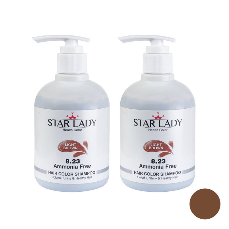 شامپو رنگ مو استارلیدی مدل شماره 8.23 رنگ قهوه ای حجم 300 میلی لیتر مجموعه 2 عددی
