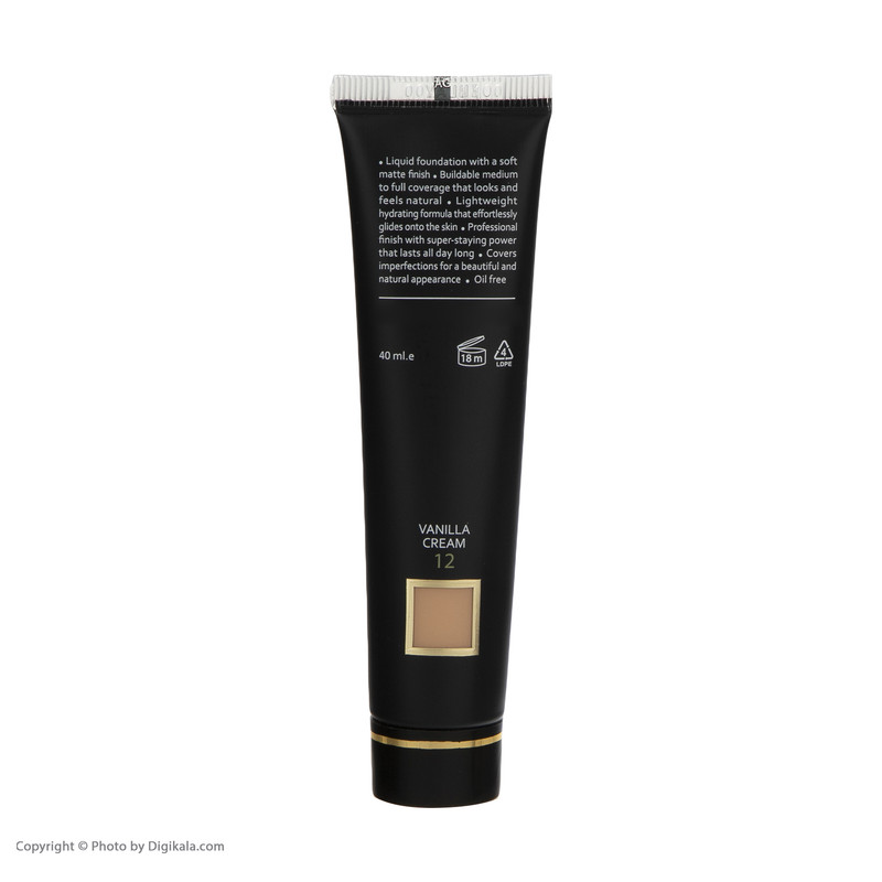 - دارای پوشش بسیار عالی و مناسب، ایجاد جلوه ای مات و طبیعی، مقاوم در برابر گرما، تعریق و رطوبت، پایه رنگ وانیلی
