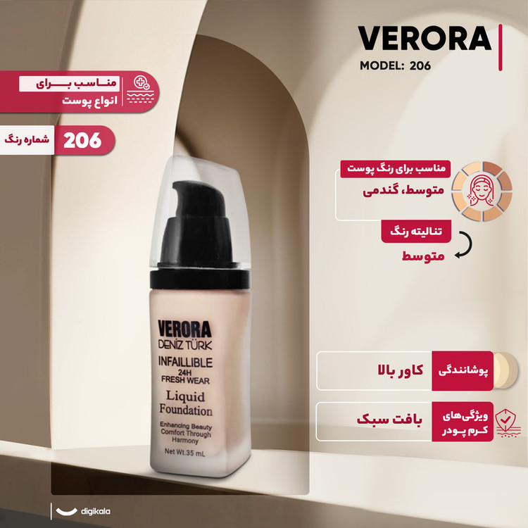کرم پودر ورورا مدل 206 حجم 35 میلی لیتر