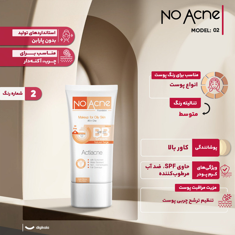 کرم پودر BB نوآکنه مدل 02 حجم 40 میلی لیتر