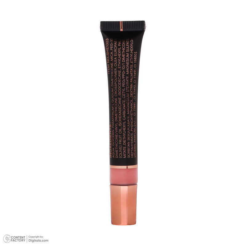 میزان رنگدهیپیگمنت متوسطنوع رژ گونهمایعسایر مشخصاتاین محصول حاوی گلیسیرین، پارافین، آب و روغن زیتون است.شماره رنگ1جلوه رنگبراقحجم13 میلیلیتر