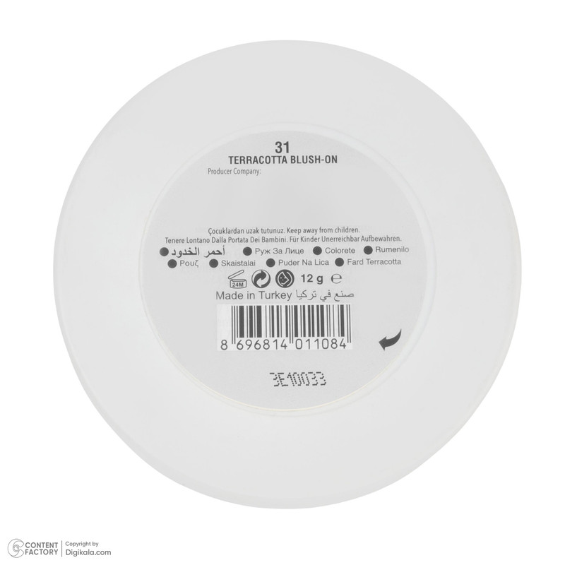 ماندگاری3 ساعتمیزان رنگدهیپیگمنت بالانوع رژ گونهتکیرنگ پایهچند رنگ (تراکوتا)شماره رنگ31وزن12 گرمجلوه رنگبراقکشور تولیدکنندهترکیه