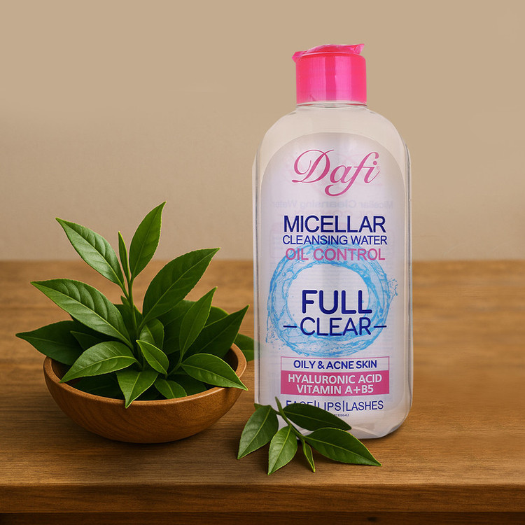 میسلار واتر دافی پوست چرب، متعادلکننده ترشح چربی پوست حاوی هیالورونیک اسید و رطوبترسانی عمیق به پوست دارای روغن درخت چای، ضدباکتری و ضد عفونیکننده پوست