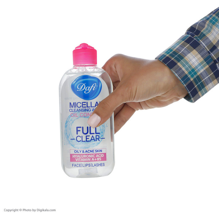 مقدار کافی از میسلار واتر دافی را روی پد آرایش پاک کن ریخته و به آرامی روی صورت و چشم و لب بکشید تا آرایش یا آلودگی پوستتان تمیز شود