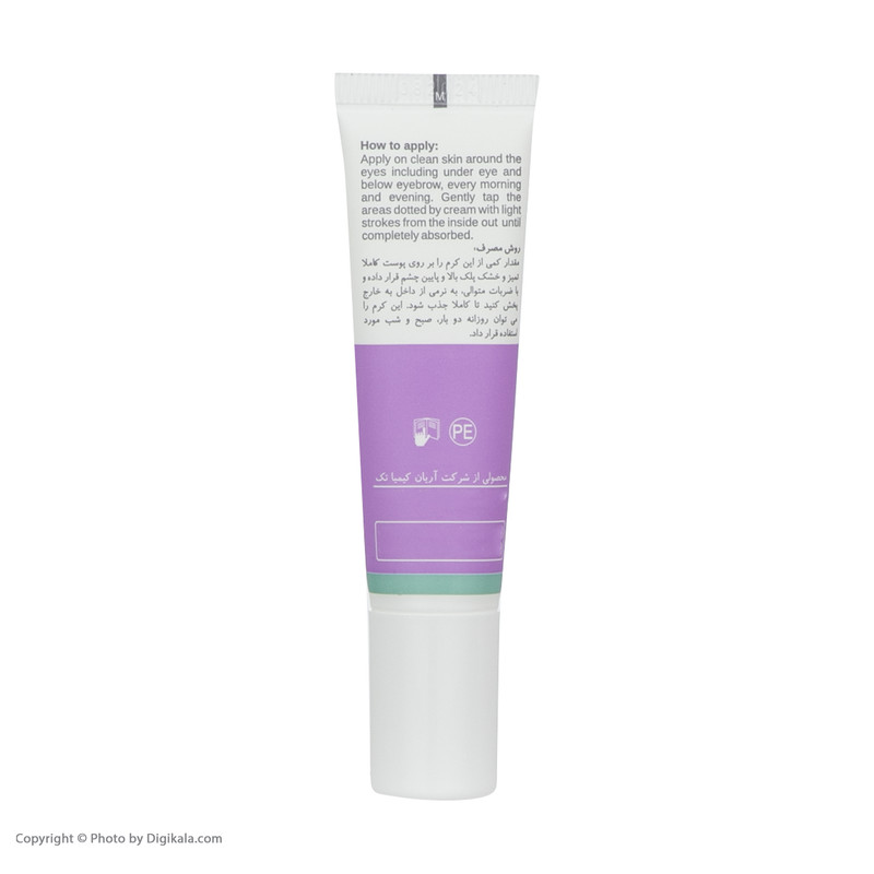 - مناسب انواع پوست- سفت کنندهی پوست- ترمیم عمیق چروکهای ریز دور چشم- بهبود گردش خون مویرگی پوست اطراف چشم- فاقد پارابن