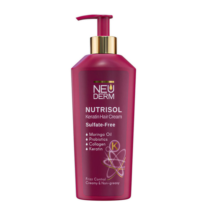کرم مو کراتینه فاقد سولفات نوتریسل نئودرم یکی از محصولات جدید در حوزه محصولات کراتین نئودرم است که حاوی مواد مؤثره مفیدی همچون کراتین، روغن کرچک، روغن مورینگا، روغن آرگان، شی باتر، کلاژن و پروبیوتیک غنی شده است که به خوبی میتواند رشتههای مو را تقویت و تغذیه کرده و حس شادابی و نرمی به موها ببخشد.