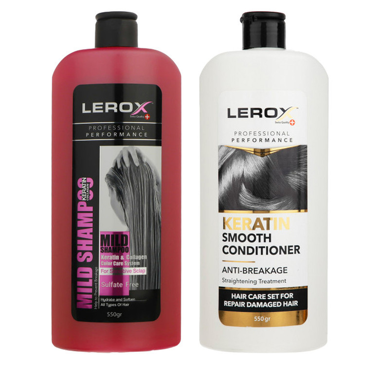 شامپو و نرمکننده مو لروکس مدل کراتینه و بدون سولفات وزن 550 گرم مجموعه 2 عددی