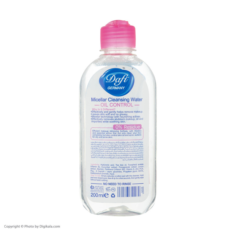 مقدار کافی از میسلار واتر دافی را بر روی پد آرایش پاک کن ریخته و به آرامی روی صورت و چشم و لب بکشید تا آرایش و یا آلودگی پوستتان تمیز شود