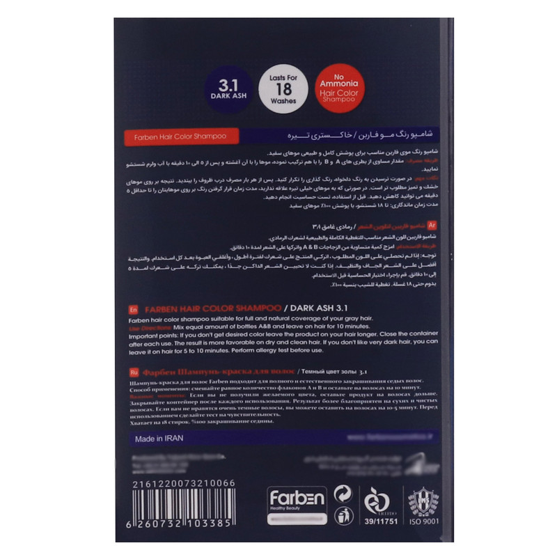✔ ایجاد رنگ خاکستری تیره طبیعی و یکنواخت ✔ پوشش 100 درصدی موهای سفید ✔ فرمولاسیون ملایم بدون آمونیاک و نیاز به اکسیدان ✔ کاربری آسان و جذب سریع رنگ ✔ ماندگاری بالا تا 18 شستشو