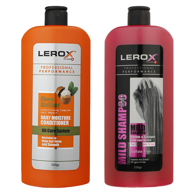 نرمکننده مو لروکس مدل شی باتر وزن 550 گرم به همراه شامپو مو لروکس مدل بدون سولفات وزن 550 گرم
