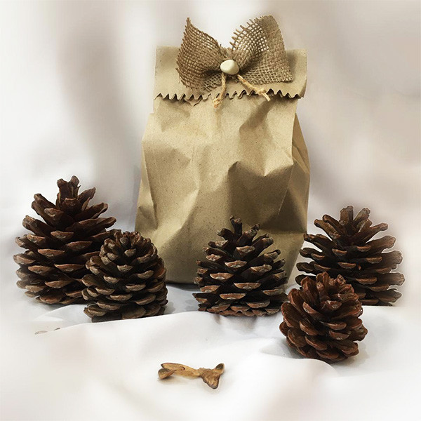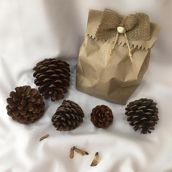 از مخروط زیبای درخت کاج برای دکور و تزیینات بسیاری مانند تزیین هدیه می توان استفاده کرد. این مخروط ها شسته شده و برای جلوه و زیبایی بیشتر جلا خورده است و در بسته بندی پاکتی زیبا ارسال می شود.