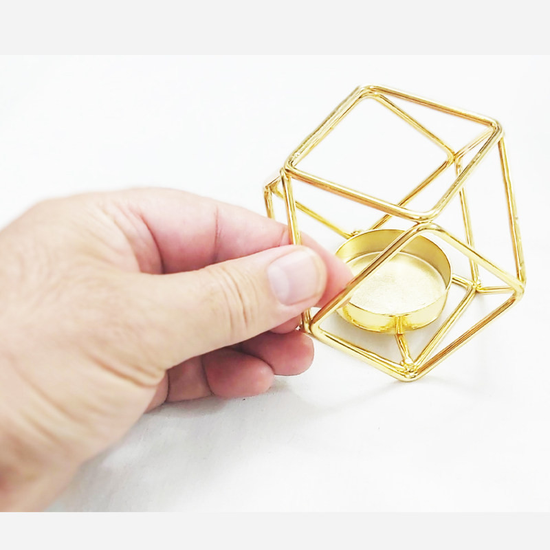 جا شمعی پایه وارمر چند وجهی وسیله ای زیبا و دکوراتیو برای تزیین منزل و میز پزیرایی می باشد. این محصول شامل پایه فلزی چند وجهی 7×7×7 سانتی متر و یک عدد جای شمع وارمر در وسط با ابعاد 4×4×1 سانتی متر است.جنس آن از مفتول مسوار با آبکاری طلایی و نقره ای یا رنگ مشکی روکش شده است.