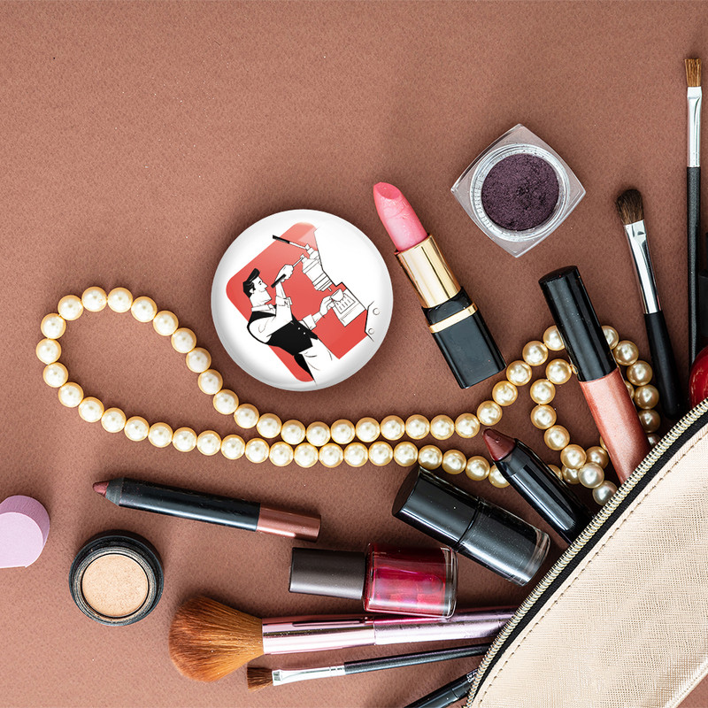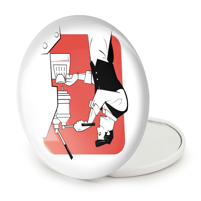 آینه جیبی خندالو طرح باریستا کافه چی مدل تاشو کد 28139