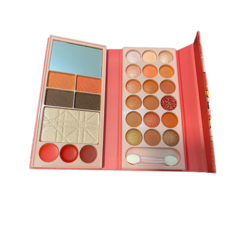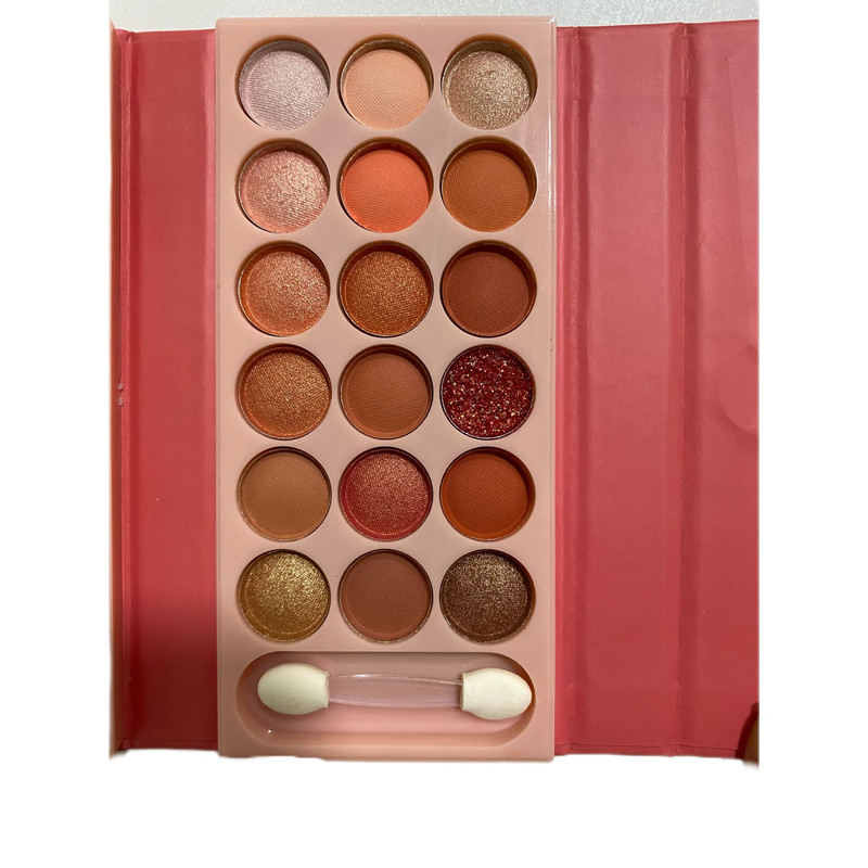 دارای 3 عدد رژ لب- 2 عدد سایه ابرو- 1 عدد پنکک- 1عدد رژگونه و 18 عدد سایه چشم