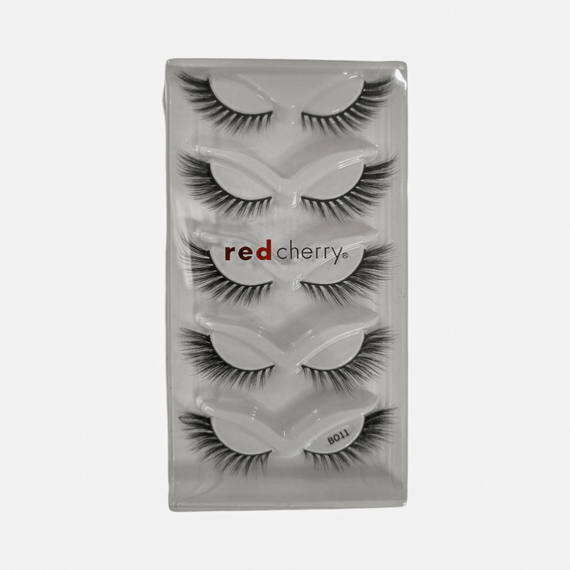 مژه های ۵ جفتی اقتصادی رد چری مدل b011 با شکلی کشیده و با بافتی مشابه با موی طبیعی و ابریشمی.
