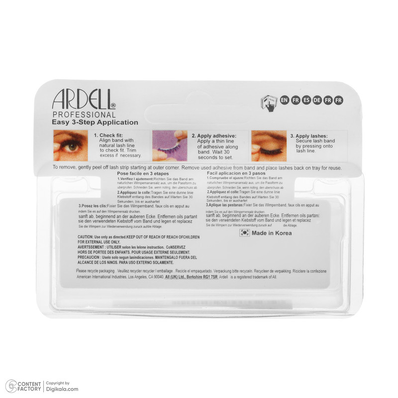 1. مژه را بهآرامی از بسته خارج کرده و روی چشم قرار دهید. 2. در صورت نیاز، طول مژه را متناسب با چشم کوتاه کنید. 3. مقدار کمی چسب مژه روی نوار بزنید و 20 تا 30 ثانیه صبر کنید. 4. مژه را از وسط روی خط مژه قرار داده و سپس کنارهها را فیکس کنید.
