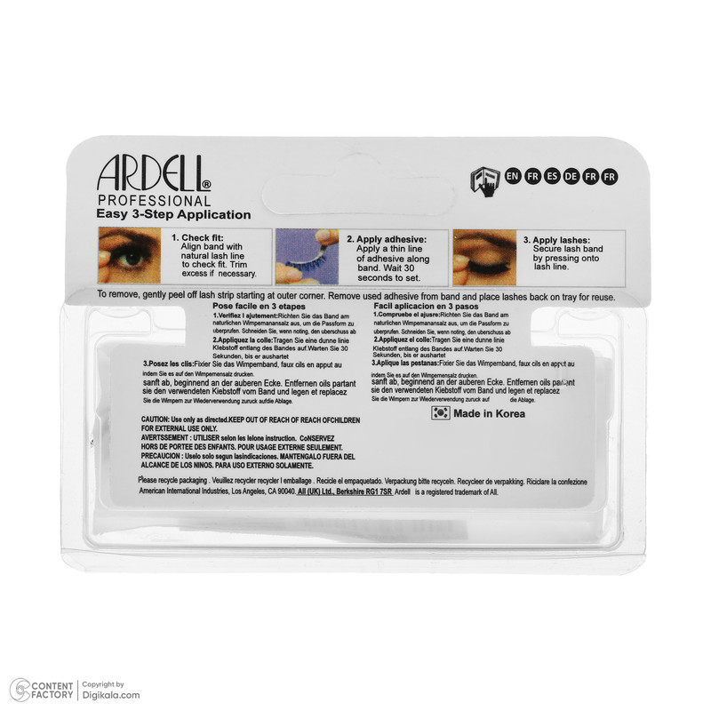 1. مژه را روی چشم قرار داده و در صورت نیاز از کنارهها کوتاه کنید. 2. مقدار کمی چسب مژه روی نوار مژه بزنید. 3. پس از چند ثانیه، مژه را روی خط مژه طبیعی فیکس کنید. 4. برای جدا کردن، بهآرامی از گوشه خارجی چشم مژه را بردارید.