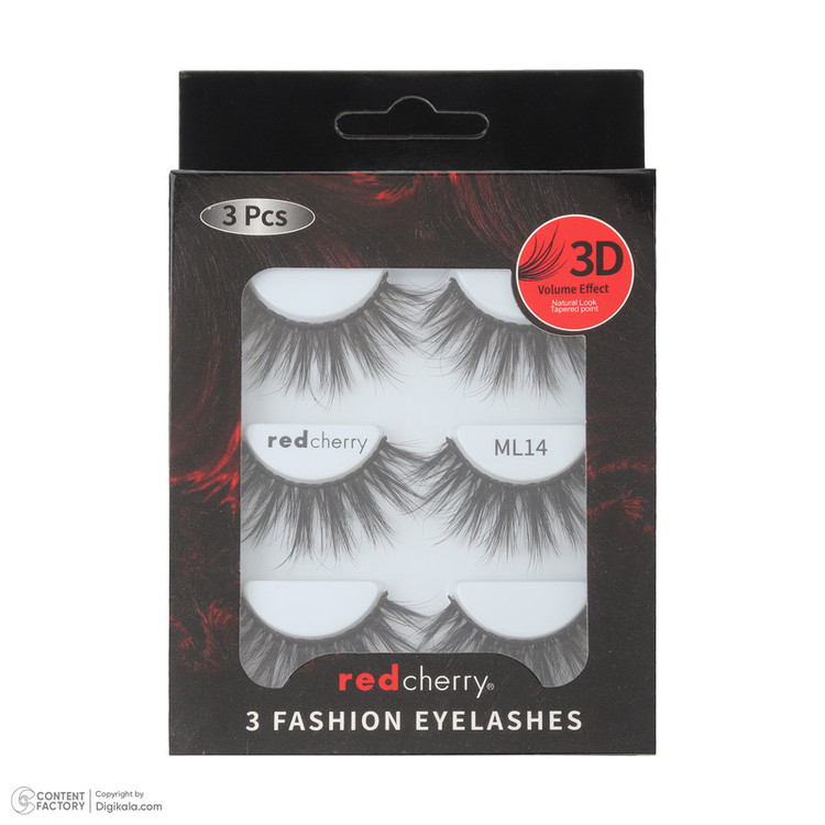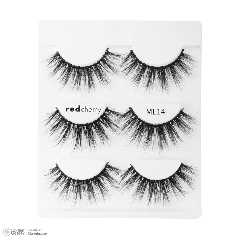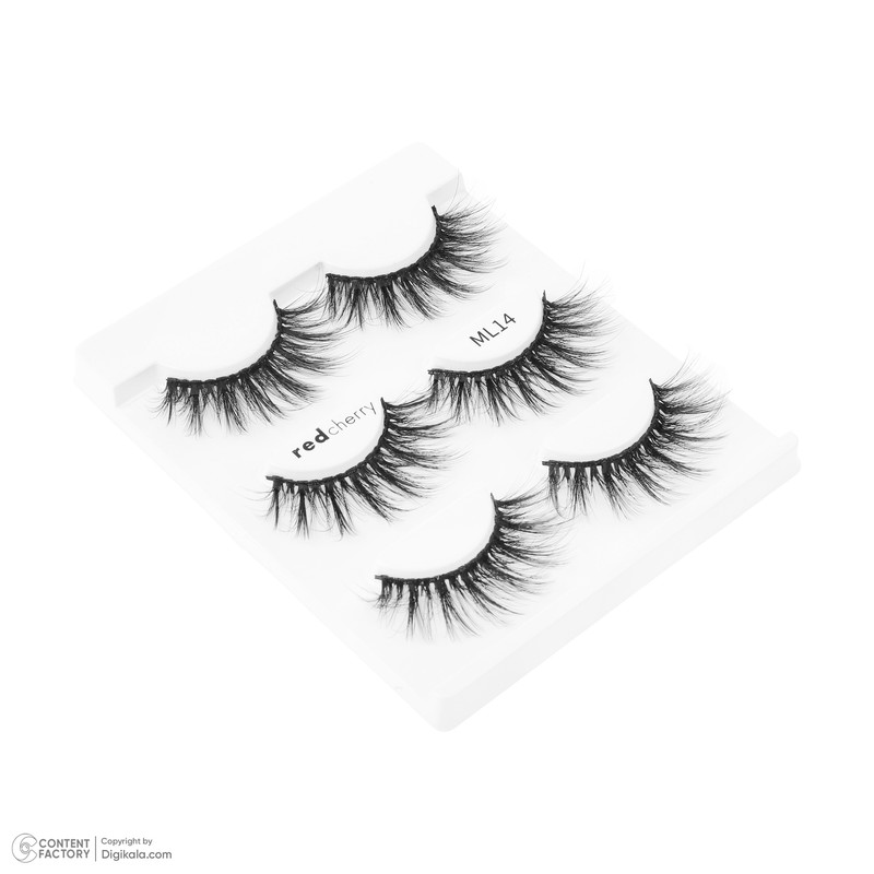رند Red Cherry مدل ML14 نوع مژه نواری افکت سهبعدی (3D) تعداد در بسته 3 جفت رنگ مشکی مناسب برای آرایش روزانه و حرفهای