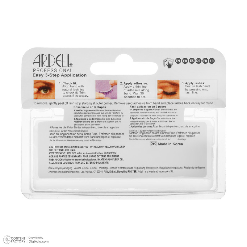 1. مژه را روی چشم قرار داده و در صورت نیاز از کناره کوتاه کنید. 2. مقدار مناسبی چسب مژه روی نوار بزنید و ۲۰ تا ۳۰ ثانیه صبر کنید. 3. مژه را از وسط روی خط مژه قرار داده و سپس دو طرف را فیکس کنید.