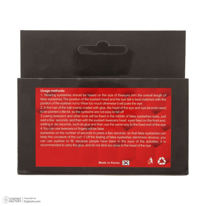 1. مژه را متناسب با فرم چشم اندازهگیری کرده و در صورت نیاز کوتاه کنید. 2. مقدار مناسبی چسب مژه روی نوار بزنید و چند ثانیه صبر کنید. 3. ابتدا وسط مژه و سپس دو سر آن را روی خط مژه فیکس نمایید.
