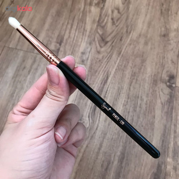 براش آرایشی سیگما مدل E30 ساخته شده با الیاف از جنس پرمیوم ضد باکتری و ضد آلرژی با تکنولوژی مهندسی پلیمر است که در برابر مواد شیمیایی و گرما بسیار مقاوم است و به راحتی میتوان با آن انواع سایه چشم را بدون جذب و ریزش طراحی کرد. دسته چوبی این محصول با 8 لایه رنگ است که امکان هر گونه خط و خش را از بین می برد.