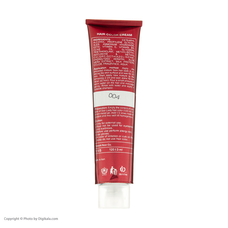 رنگ مو ضد زردی استارلیدی شماره 004 حجم 120 میلی لیتر