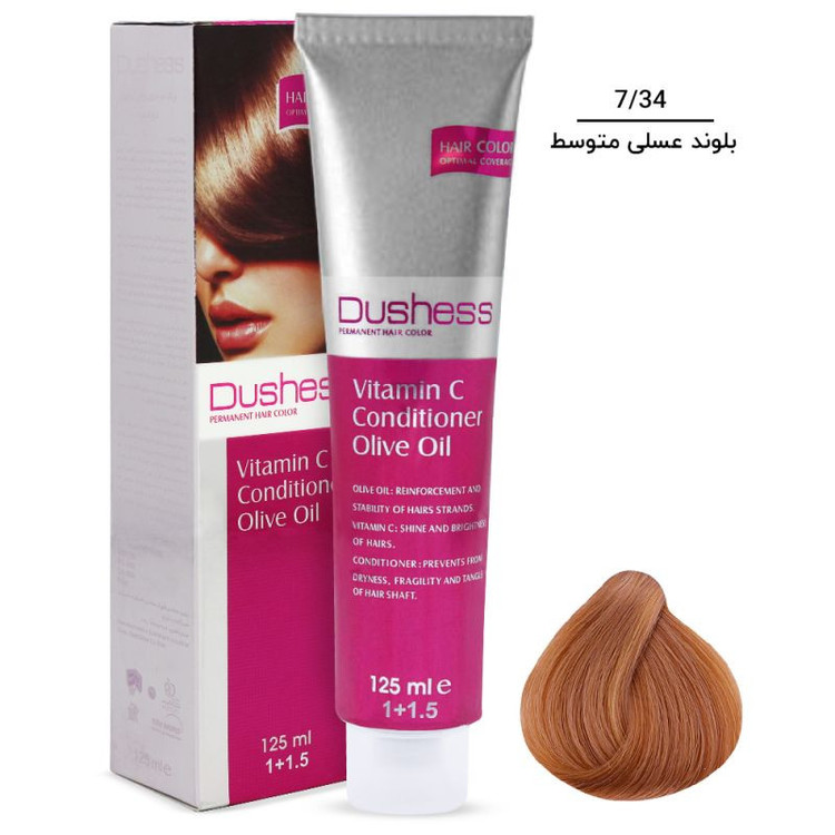 رنگ مو دوشس سری عسلی شماره 7.34 حجم 125 میلی لیتر رنگ بلوند عسلی متوسط