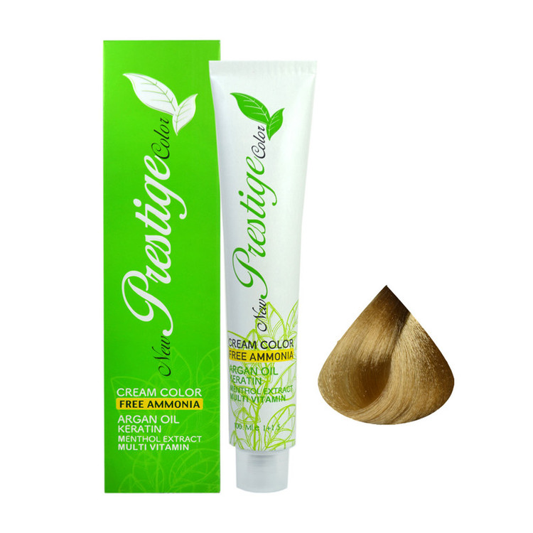 اکثر خانمها بهدنبال تغییر و تحول در ظاهر خود هستند که استفاده از رنگ مو میتواند این تغییر چشمگیر را در چهرهشان ایجاد کند. این محصول با حجم 100 میلیلیتر برای موهای نسبتا بلند در حد متوسط جوابگو خواهد بود. نیو پرستیژ کالر به شما امکان میدهد تا موهای سفید خود را با استفاده از این رنگ مو پوشش دهید. .رنگ موی بدون آمونیاک نیو پرستیژ کالربه وسیلهی پروتئین، کراتین ،روغن آرگان وعصاره نعناع غنی شده است. کراتین عمدهترین مادهی تشکیل دهندهی ساقهی مو محسوب میشود اما این ماده بر اثر استفاده ی مداوم از مواد شیمیایی مانندرنگ، مش، فر، براشینگهای مداوم و حتی بر اثر استفاده از سشوار داغ از بین میرود و در نتیجهی آن، موی سر هنگام شانه زدن میشکند. رنگ موی نیو پرستیژ کالربا دارا بودن مادهی حیاتی کراتین، پادزهرِ این حالت را در بطن خود دارد، لذا شما با استفاده از این محصول فقط مویتان را رنگ نمیکنید بلکه موهایتان را تقویت نیز میکنید،این رنگ مو حاوی بیشترین غلظت مواد گیاهی است و قابل استفاده برای زنلن باردار است با استفاده از این رنگ مو به موهایی نرم و درخشان دست پیدا می کنیم.رنگ موهای پرستیژ ماندگاری رنگ مو را گارانتی میی کند این رنگ موها تحت عنوان محصولات مراقبت از مو فرموله شده اند.رنگ موهای پرستیژ به مو و پوست سر آسیب نمی رسانند و خطر آلرژی را به حداقل می رسانند.