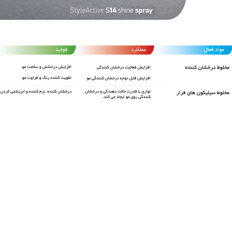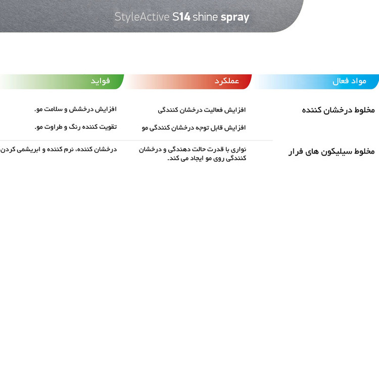 اسپری براق کننده با قابلیت بالای کنترل وزی مو نکهداری کوتاه مدت خشک کنندگی سریع و نرم سازی مو