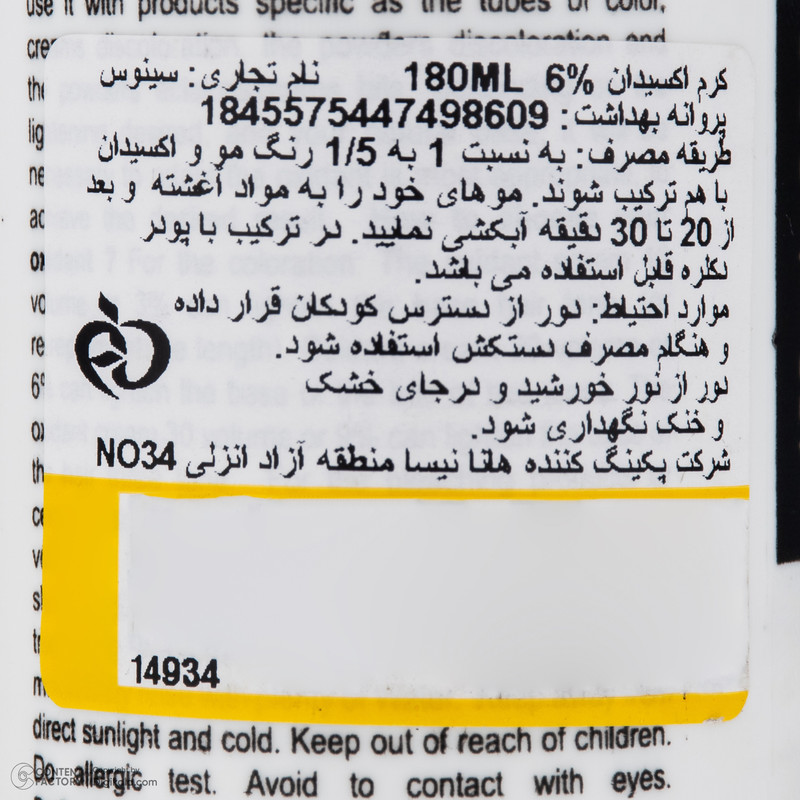 حجم180 میلیلیترشماره مجوز2.419000122311E+19صادرکننده مجوزبهداشتقدرت اکسیدان6 درصدنوع اکسیداناکسیدان 1