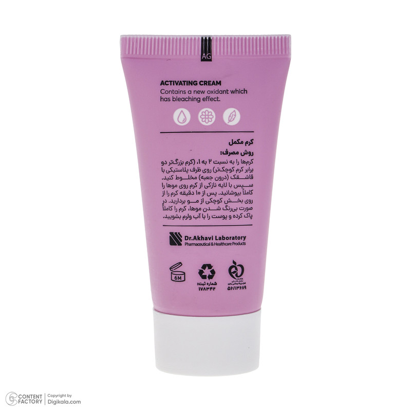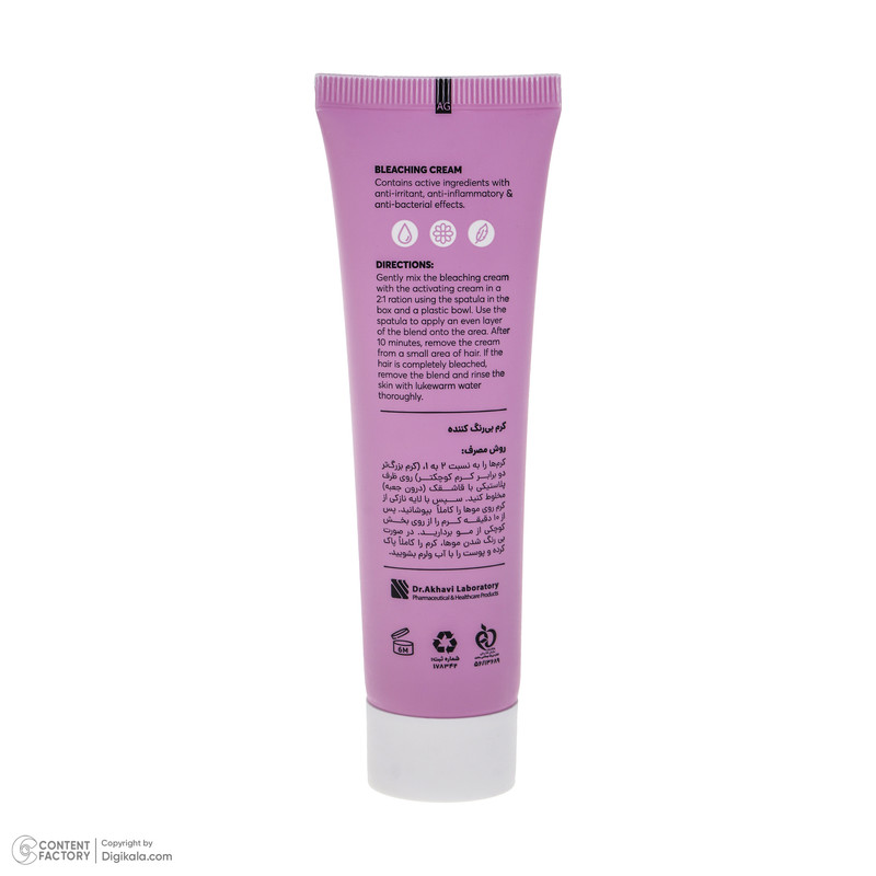 دستهبندی: بی رنگ کننده مو (دکلره)وزن: 60 گرمجنس محفظه: پلاستیکنوع محفظه: تیوبینوع بی رنگ کننده مو: کرم