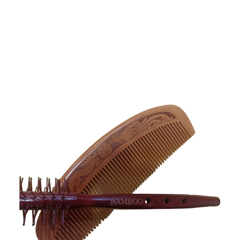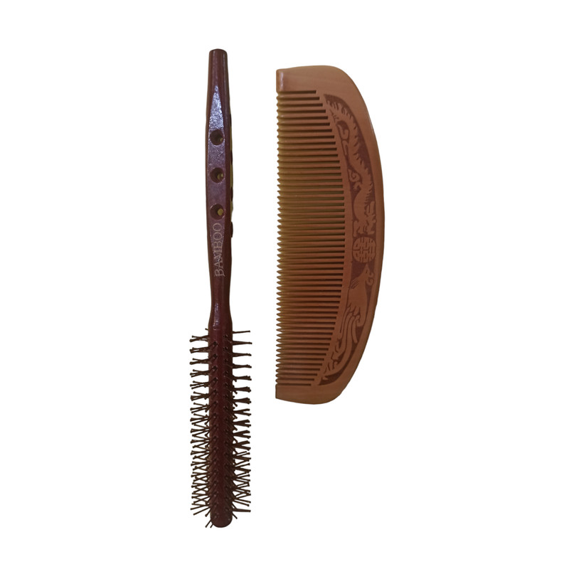 سایر توضیحات: شانه تخت از جنس چوب بامبو با طراحی فوق العاده زیبا و برس گرد از جنس چوب بامبو که روی کالا نوشته شده است با دندانه های پلاستیکی فوق العاده مقاوم که از سوختن موی سر جلوگیری میکند توجه داشته باشید رنگ شانه کرم تیره و رنگ برس گرد عنابی میباشد طبق تصویر