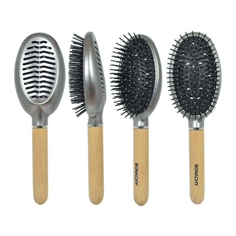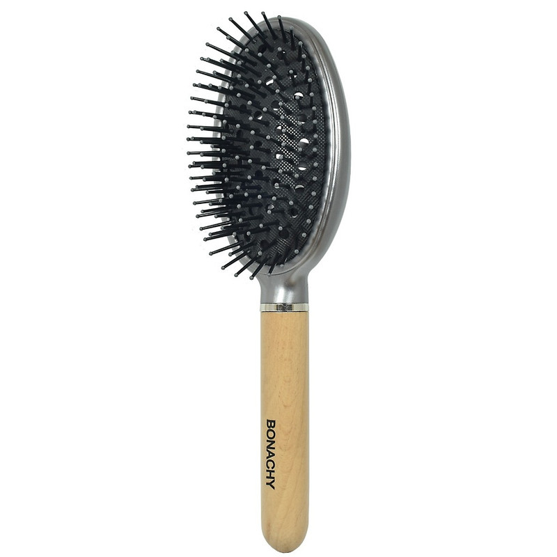 ویژگیها: طول: ۲۴ سانتیمتر دستهی چوبی خوشدست و سبک بدنهی ساختهشده از پلاستیک فشردهی مقاوم طراحی بیضی برای پوشش بیشتر سطح مو پینهای نرم و ضد گره با سر توپی مناسب برای استفاده روزمره