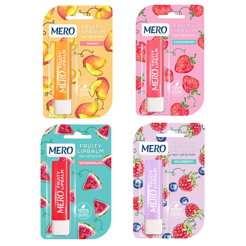 بالم لب بی رنگ میوه ای مرو حاوی موم زنبور عسل و روغنهای مرطوب کننده گیاهی سازگار با پوست است که ضمن ترمیم از ایجاد خشکی و پوسته پوسته شدن لب ها جلوگیری میکند.این محصول همراه با رایحه میوه ای می باشد.