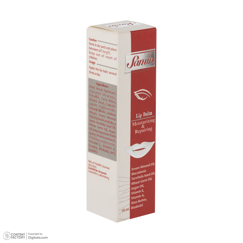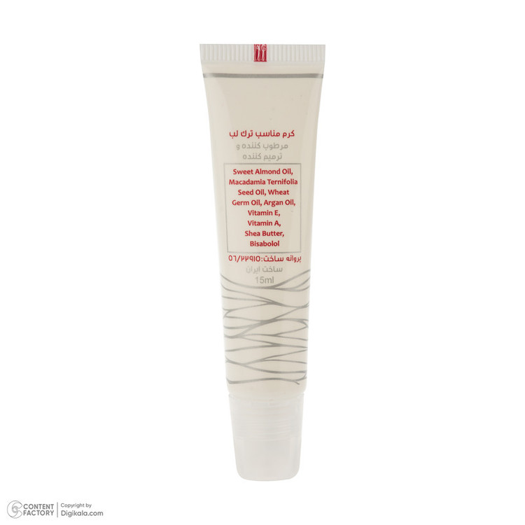 این محصول حاوی روغن بادام شیرین، روغن دانه ماکادمیا، روغن جوانه گندم، روغن آرگان، شیباتر و بیسابولول است و با تغذیه عمیق پوست، ترک لبها را به سرعت و مؤثر رفع میکند. روغن بادام شیرین سرشار از ویتامین A و E است و با نرم کردن بافتهای پوست، در کاهش التهابهای پوستی مؤثر است. روغن ماکادمیا خواص ضد التهابی داشته و به راحتی جذب پوست میشود و باعث هیدراته شدن لبها میگردد. روغن جوانه گندم لطافت و شفافیت لبها را افزایش میدهد و خاصیت ارتجاعی پوست را حفظ میکند. روغن آرگان با خواص مغذی، آنتیاکسیدانی و ترمیمکننده، رطوبت پوست را حفظ میکند. شیباتر با داشتن سینامیک اسید، مرطوبکننده گیاهی مؤثر و ترمیمکننده است و بیسابولول نیز خاصیت ضد التهابی و ضد حساسیت دارد. ویتامین A و E با بازسازی و نوسازی سلولها، به حفظ سلامت و رطوبت لبها کمک میکنند و باعث نرمی و لطافت طولانی مدت پوست میشوند.