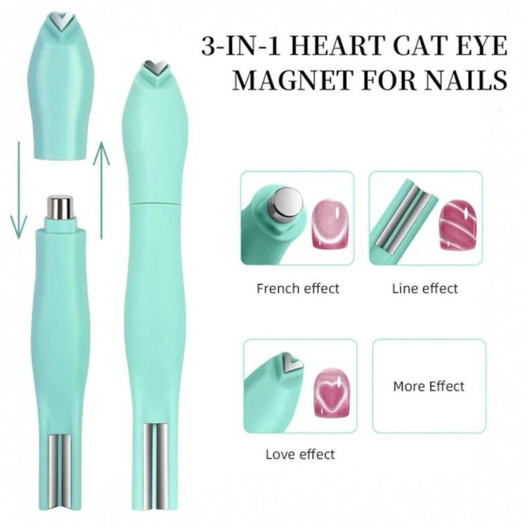 پس از زدن بیس و یک لایه لاک ژل مگنتی ،قبل از خشک کردن، مگنت را با فاصله چند میلی متری بالای ناخن نگه دارید تا طرح دلخواه شکل بگیرد،سپس بلافاصله داخل دستگاه UV خشک کنید و در صورت نیاز تاپ ژل بزنید.