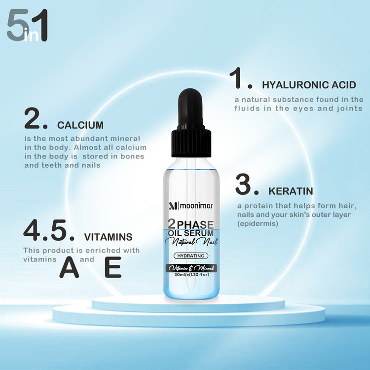در ترکیبات این سرم از ویتامین E و A و همینطور کراتین و هیالورونیک اسید و کلسیم استفاده شده است، این سرم آب رسان بسیار قوی میباشد. باتوجه به دوفاز بودن این محصول قبل از استفاده باید چند بار تکان داده شود و بعد از آن استفاده شود.