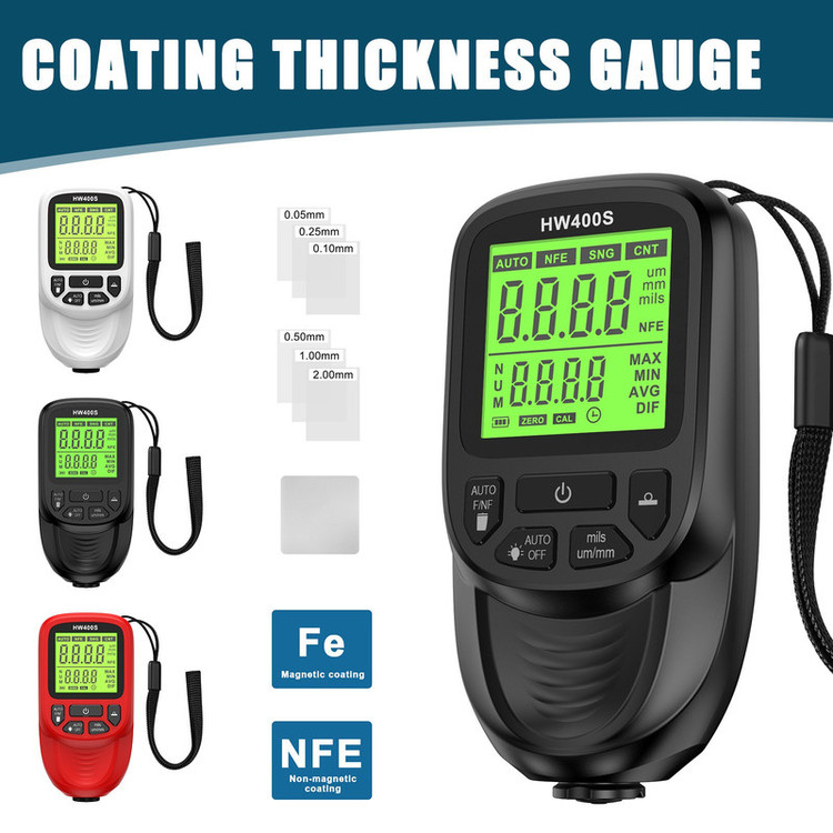 ضخامت سنج مدل HW-400S یک دستگاه اندازهگیری است که برای تعیین ضخامت مواد مختلف به کار میرود. این دستگاه معمولاً در صنایع مختلف مانند ساخت و ساز، خودروسازی، و تولیدات صنعتی مورد استفاده قرار میگیرد مشخصات فنی: بازه اندازی گیری : 0 تا 2000 میکرون رزولوشون : 0 تا 999 میکرومتر پشتیبانی از Zero calibration پروب اصل دوگانه القایی مغناطیسی داخلی و گردابی، می تواند به طور خودکار بستر فلزی اندازه گیری شده را شناسایی کند همچنین می تواند به طور خودکار ضخامت پوشش را محاسبه کند. صفحه نمایش LCD دیجیتال: صفحه نمایش دیجیتال با نور پس زمینه، پشتیبانی از نمایش داده های آماری، میانگین، حداقل، حداکثر و تعداد. این ابزار تا ۵۰ داده را برای حمل آمار پشتیبانی می کند، وقتی به ۵۰ رسید، آخرین داده ها جایگزین قدیمی ترین داده ها می شوند، مقدار آماری به طور خودکار به روز می شود. سه حالت پروب: با سه حالت پروب حالت خودکار (AUTO)، حالت القای مغناطیسی (F) و حالت گردابی (NFE)، می توانید بسته به نیاز خود تغییر دهید. عملکرد تعویض واحد: برای جابجایی واحدها بین میکرون، میلیمتر میلیمتر و میلیمتر میل فشار دهید. کالیبراسیون صفر کردن: به منظور بهبود دقت تست، پیشنهاد می شود که ابزار کالیبره شود تا از دقت بالاتر اطمینان حاصل شود. طراحی چند منظوره: مجهز به نشانگر قدرت باتری و عملکرد خاموش شدن خودکار ۳ دقیقه بدون عملیات، و پشتیبانی از روشن و خاموش کردن نور پس زمینه. فیلم استاندارد آلومینیومی: همراه با ورق آلومینیوم و فیلم های کالیبراسیون ۶ عددی، با ضخامت های مختلف ۰.۰۵ میلی متر، ۰.۲۵ میلی متر، ۰.۱۰ میلی متر، ۰.۵۰ میلی متر، ۱.۰۰ میلی متر و ۲.۰۰ میلی متر برای پاسخگویی به خواسته های شما. هدف اندازه گیری: تستر برای اندازه گیری غیر مخرب پوشش و ضخامت رنگ، سریع و دقیق استفاده می شود. این عمدتا برای اندازه گیری ضخامت پوشش غیر رسانا روی سطح فلز و همچنین ضخامت پوشش غیر فرومغناطیسی روی فلز فرومغناطیسی (مانند آهن، نیکل، کبالت و غیره) مانند ضخامت رنگ روی سطح خودرو استفاده می شود. کاربردهای گسترده: به طور گسترده در تولید، صنعت پردازش فلز، صنایع شیمیایی، بازرسی تجاری و غیره استفاده می شود. همچنین می تواند به طور پایدار در آزمایشگاه، کارگاه و زمینه های دیگر کار کند.