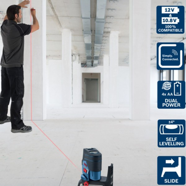توضیحات باتری : 18 h (Li-Ion) and 10 h (4 x AA) in cross-line and point operation, 25 h (Li-Ion) and 16 h (4 x AA) in cross-line operation, 35 h (Li-Ion) and 28 h (4 x AA) in line operation, 60 h (Li-Ion) and 32 h (4 x AA) in point operation
