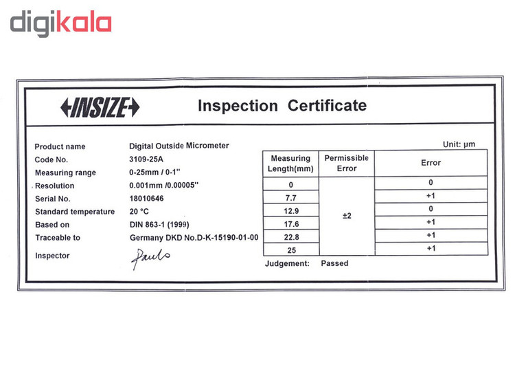 - تحت لیسانس اتریش - دارای دکمه روشن، خاموش، اینچ، میلی متر، و ABS/INC - خاموش شدن بصورت خودکار با باتری LR44 - هرزگرد بزرگ برای اندازه گیری ساده تر با یک دست - گواهی قابل ردیابی از DKD آلمان - دارای برگه کالیبره - گستره 25-0 میلیمتر