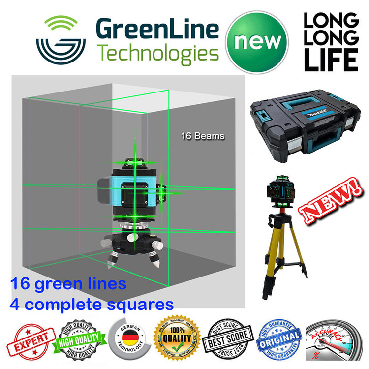 تراز لیزری ماکیتا نور سبز مدل 16 لاین کد 16-360 4D Hard Box