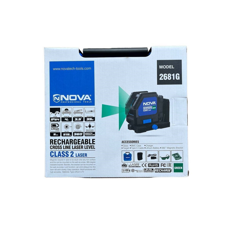 دستگاه تراز لیزری - کیف BMC - پایه آهنربایی با قابلیت چرخش 360 درجه - باتری لیتیوم 3/7 ولت - شارژر - گیرنده - عینک جهت افزایش دید - کابل تایپ c