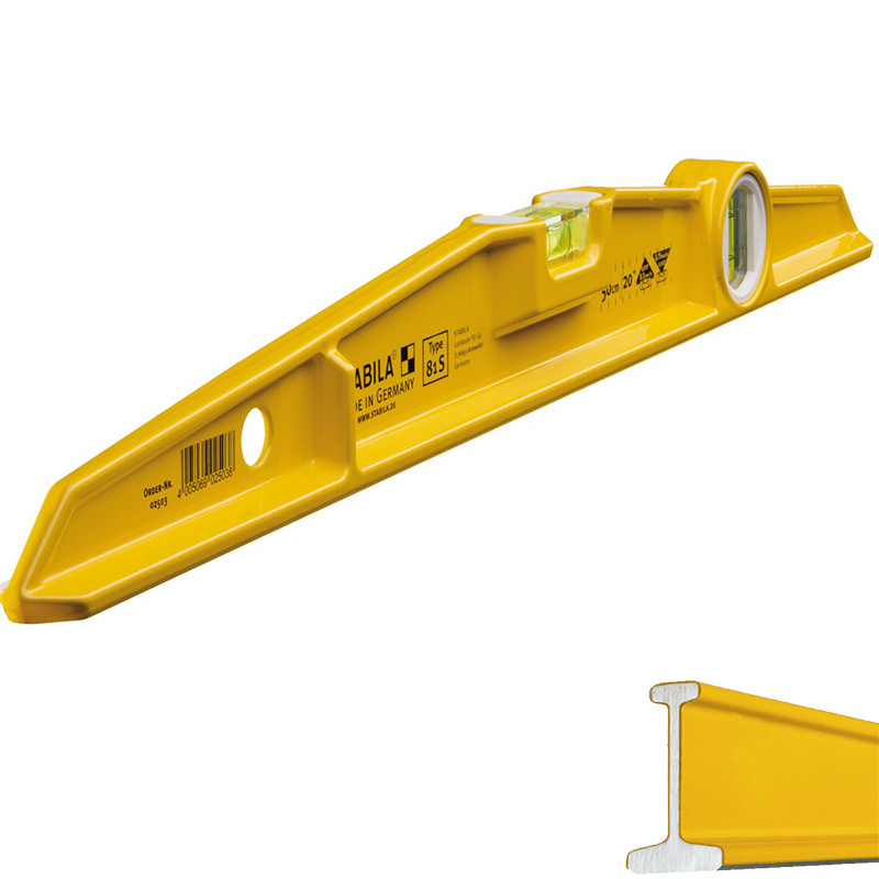 سایر توضیحات: تراز مثلثی 50 سانتی متری تراز STABILA 81S 50cm ساخت آلمان دارای 2 حباب تراز در راستای قائم و افق با دقت 0.029 درجه این مدل تراز در بازار ایران به مدل تراز شتری نیز معروف است .